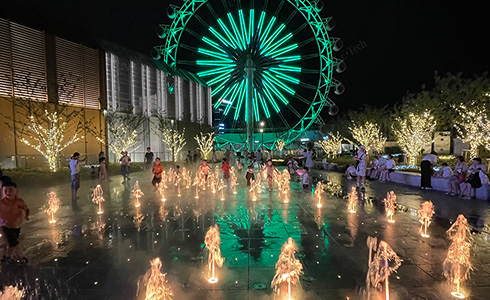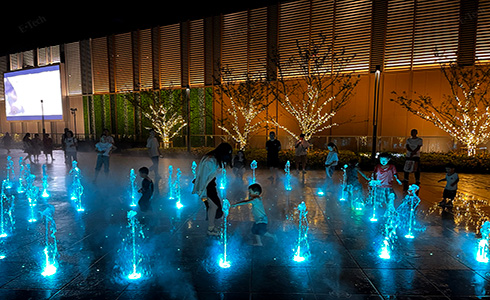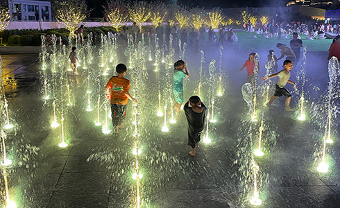 The project utilizes a total of 182 units of DC24V submersible pumps, including 145 units of MSP200 (150W), 32 units of 4SP5-8 (400W), 3 units of 5SP20-8 (1600W), and 2 units of 4SP8-18 (120W). Among them, 145 units of MSP200 pumps are used in the core area of the square's dry fountains. The fountain's dry spray is shaped like two intertwined hearts, complemented by color-changing lights, creating a romantic and artistic atmosphere. The safety enhancements provided by DC24V submersible pumps allow children to play freely in the water, enhancing the harmonious feeling of closeness and integration between people and water.